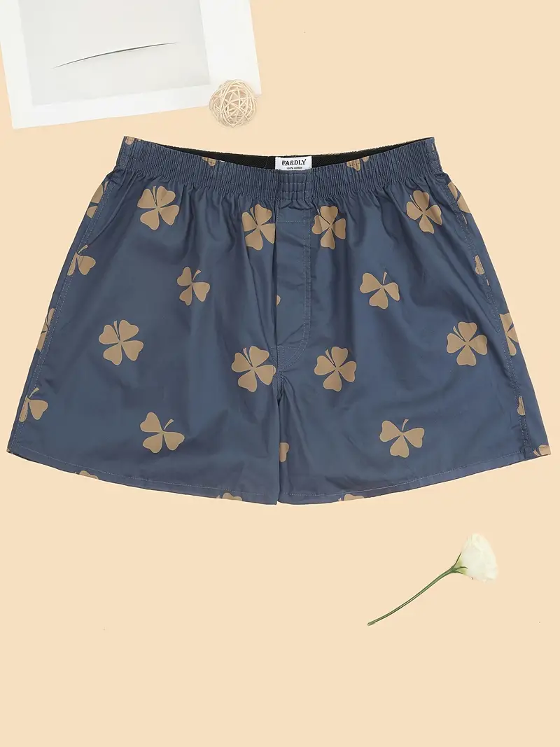1pc Men's Shamrock Leaf Woven Boxers Underwear