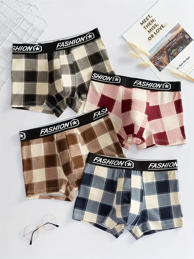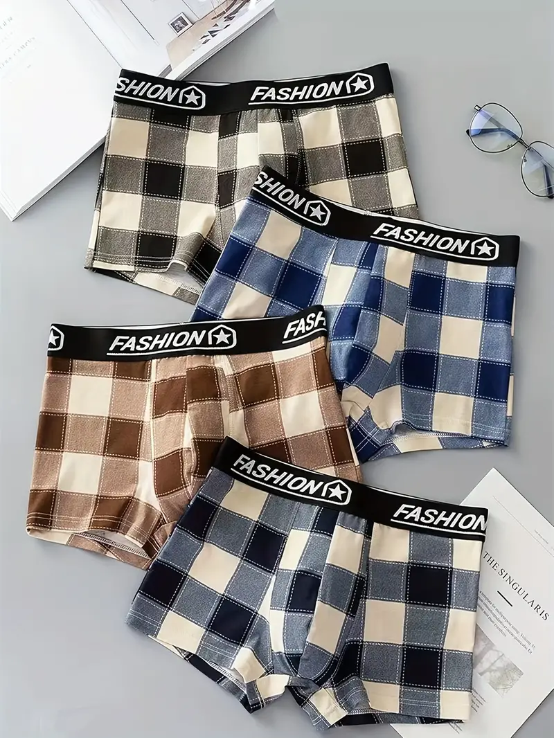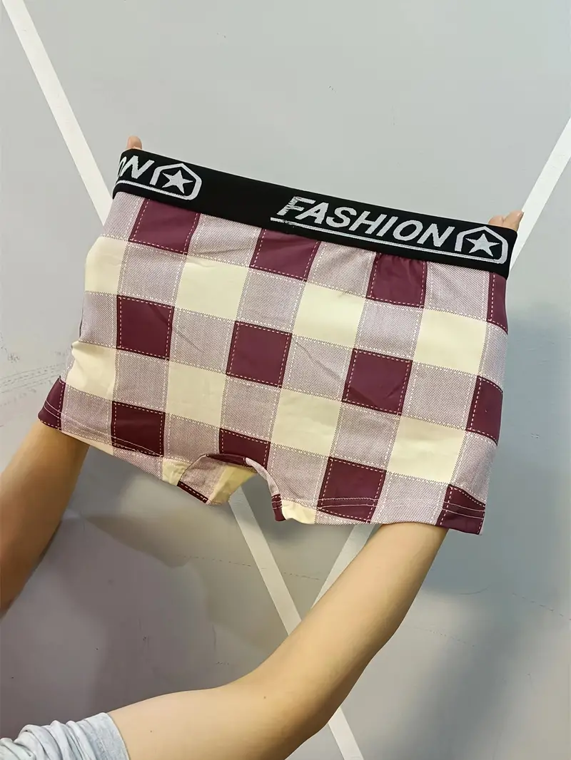 3pcs Men's Casual Plaid Boxer Briefs Shorts, Sexy Breathable Comfy Stretchy Boxer Trunks, Men's Underwear