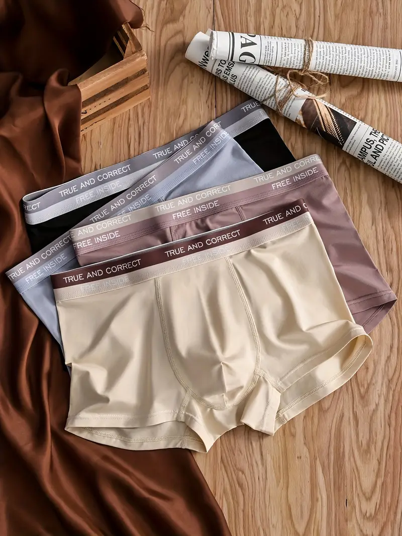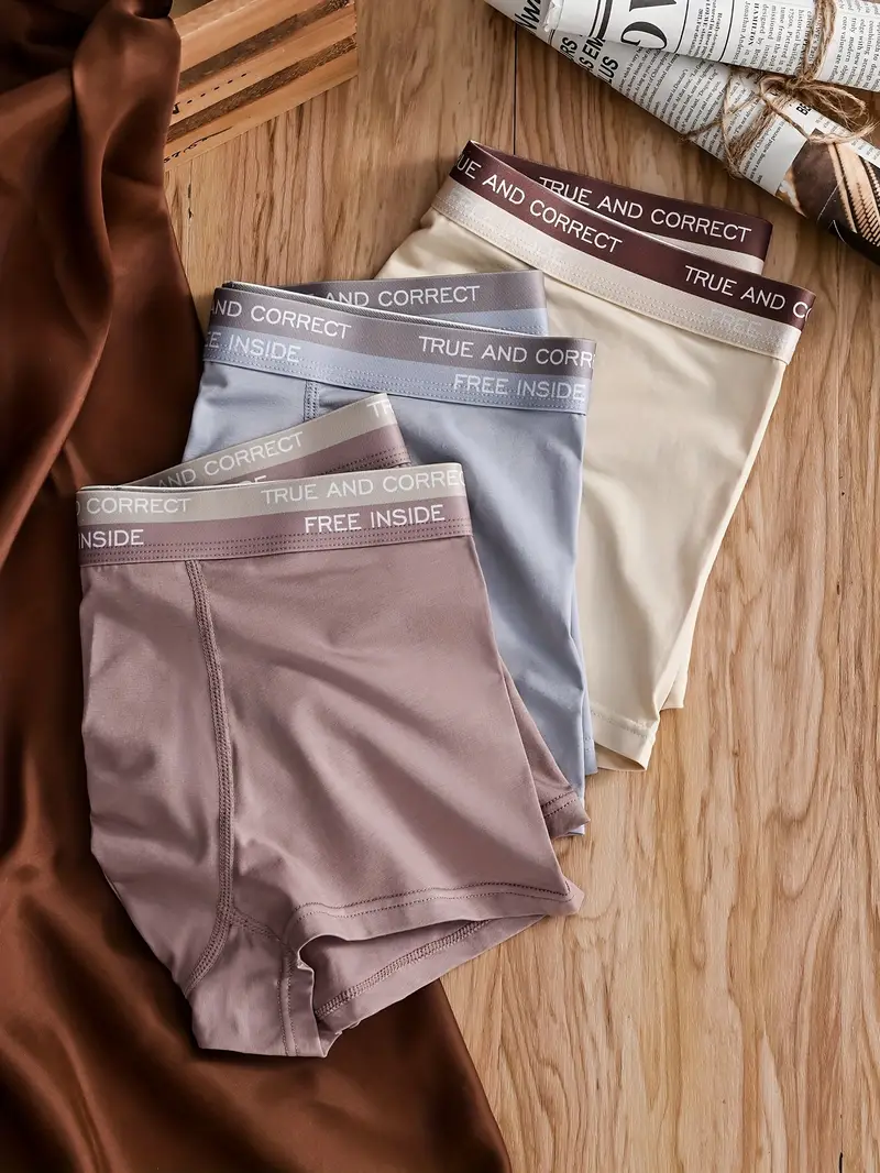 4pcs Men's Trendy Underwear, Antibacterial Breathable Soft Comfy High Stretch Boxer Briefs Shorts, Sports Shorts