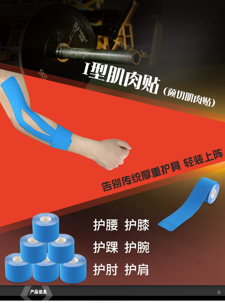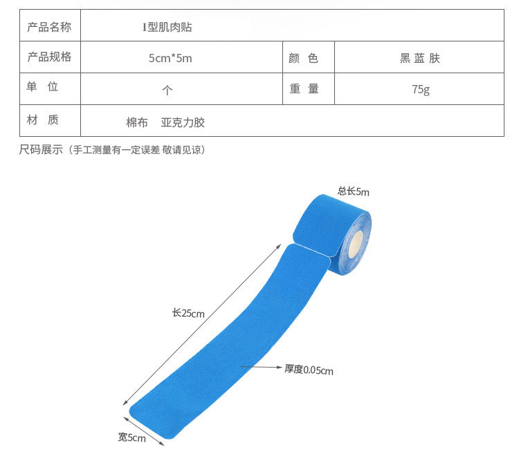 Cross-boundary best-selling type I muscle sports bandage professional running fitness knee and ankle strain tape blue (5cm*5m)Product Standard: