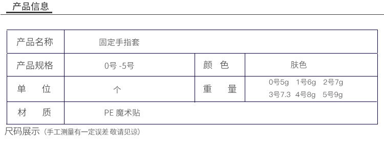 Color: skin color 0 (fit 38-42mm finger length), skin color 1 (fit 42-48mm finger length), skin color 2 (fit 48-53mm finger length), skin color 3 (fit 53-55mm finger length), skin color 4 (fit 55-60mm finger length), skin color 5 (fit 60-65mm finger length);