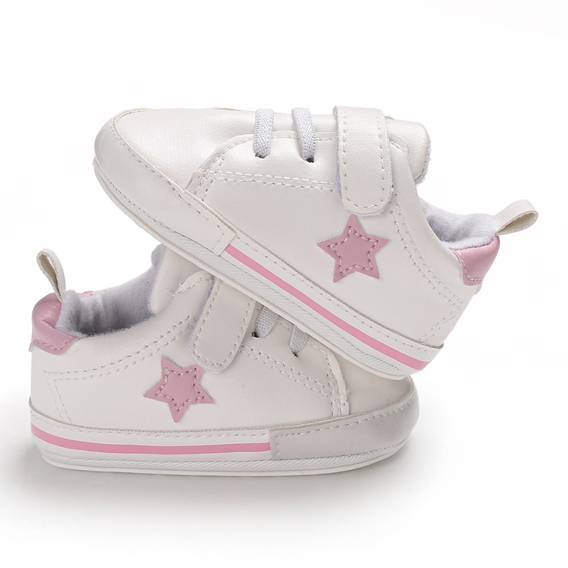 Four seasons casual shoes for 0-1 year old newborn with soft sole pentangle star baby walking shoes with pink inner length of 11CM / 67gProduct Standard: